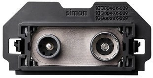 Gniazdo antenowe CATV podwójne 5 MHz - 1000 MHz zakończeniowe (mechanizm 1/2, bez ramki montażowej), zaciski śrubowe, SIMON100 o numerze katalogowym 10000465-039 w kategorii Gniazda teleinformacyjne, multimedialne, Łączniki i gniazda instalacyjne. Produkt wyprodukowany przez markę KONTAKT-SIMON, seria SIMON 100.