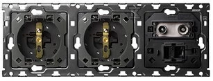 Zestaw 3-krotny: 2 gniazda + 1 TV końcowe + 1 RJ45 cat 6, SIMON100  o numerze katalogowym  10010316-039  w kategorii Gniazda teleinformacyjne, multimedialne, Łączniki i gniazda instalacyjne. Produkt wyprodukowany przez markę KONTAKT-SIMON, seria SIMON 100.