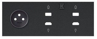 Panel 3-krotny: 1 gniazdo + 1 HDMI + 1 USB + 1 HDMI + 1 USB, czarny mat, SIMON100 o numerze katalogowym 10020318-238 w kategorii Plakietki, Ramki, klawisze, plakietki. Produkt wyprodukowany przez markę KONTAKT-SIMON, seria SIMON 100.