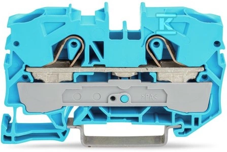 Złączka 2-przewodowa przelotowa 16 mm do zastosowań Ex e II oraz Ex i opis z boku i na środku na szynę TS 35 x 15 i 35 x 7,5 Push-in CAGE CLAMP 16,00 mm niebieski o numerze katalogowym 2016-1204 w kategorii Złączki i zaciski ochronne sprężynowe, Złączki listwowe sprężynowe. Produkt wyprodukowany przez markę WAGO, seria TOPJOB® S.