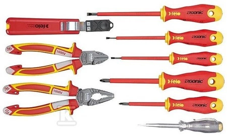 Zestaw 9 narzędzi dla elektryka w kaburze na pas o numerze katalogowym FL41399504 w kategorii Narzędzia ręczne>Pozostałe narzędzia ręczne. Produkt wyprodukowany przez markę FELO.