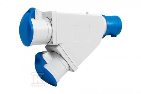 Adapter kempingowy wtyk 16A 3p, gniazdo 2x16A 3P - z uchwytem o numerze katalogowym 73110 w kategorii Łączniki i gniazda instalacyjne>Gniazda wpusty kablowe. Produkt wyprodukowany przez markę F-ELEKTRO.