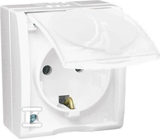 Gniazdo wtyczkowe z uziemieniem Schuko bryzgoszczelne IP54, klapka biała, z przesłonami torów prądowych, 16A, 250V~, zaciski śrubowe, biały, AQUARIUS o numerze katalogowym AQGSZ1Z/11 w kategorii Gniazda podtynkowe, Gniazda instalacyjne. Produkt wyprodukowany przez markę KONTAKT-SIMON, seria AQUARIUS.
