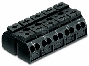 Blok zasilający 4-przewodowy, bez styku PE, L3-N-PE-L1-L2, 5-biegunowe do śruby i nakrętki M3, 4 mm2, 4,00 mm2, czarny o numerze katalogowym 862-2505 w kategorii Niesklasyfikowane>Pozostałe. Produkt wyprodukowany przez markę WAGO, seria 862.