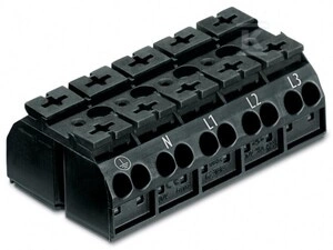Blok zasilający 4-przewodowy, bez styku PE, PE-N-L1-L2-L3, 5-biegunowe do śruby i nakrętki M3, 4 mm2, 4,00 mm2, czarny o numerze katalogowym 862-1505 w kategorii Niesklasyfikowane>Pozostałe. Produkt wyprodukowany przez markę WAGO, seria 862.