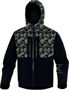 Bluza z tkaniny softshell z poliestru (96%) i elastanu (4%), 3 warstwy laminowane Czarny-kamuflaż XXL o numerze katalogowym HORT2NCXX w kategorii Odzież robocza>Bluzy, kurtki i spodnie robocze. Produkt wyprodukowany przez markę DELTA PLUS, seria OCHRONA CIAŁA.
