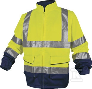 Bluza ostrzegawcza panostyle z poliestru (80%) i bawełny (20%), 230 g/m2, kl. 2 ​żółty fluo-granatowy XL o numerze katalogowym  PHVE2JMXG w kategorii Bluzy, kurtki i spodnie robocze, Odzież robocza. Produkt wyprodukowany przez markę DELTA PLUS.
