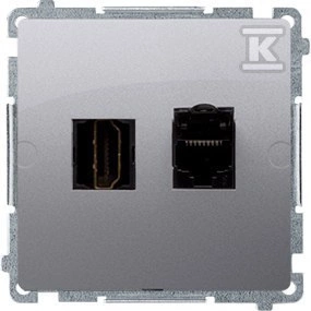 Gniazdo HDMI + RJ45 kat.6. (moduł), srebrny mat, BASIC MODUŁ o numerze katalogowym BMGHRJ45.01/43 w kategorii Gniazda teleinformacyjne, multimedialne, Łączniki i gniazda instalacyjne. Produkt wyprodukowany przez markę KONTAKT-SIMON, seria BASIC MODUŁ.