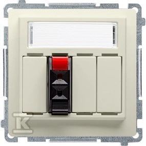 Gniazdo głośnikowe 1-krotne z polem opisowym (moduł). Przekrój przew. dla wejścia i wyjścia 2,5 mm2. Mocowanie na łapki i wkręty, beż, BASIC MODUŁ o numerze katalogowym BMGL31.01/12 w kategorii Gniazda głośnikowe, Łączniki i gniazda instalacyjne. Produkt wyprodukowany przez markę KONTAKT-SIMON, seria BASIC MODUŁ.