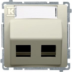 Pokrywa gniazd teleinformatycznych na wkłady RJ typu: Panduit, skośna podwójna z polem opisowym. Montaż do puszki na wkręty, beż, BASIC MODUŁ  o numerze katalogowym  BMGPS2P.02/12  w kategorii Plakietki, Ramki, klawisze, plakietki. Produkt wyprodukowany przez markę KONTAKT-SIMON, seria BASIC MODUŁ.