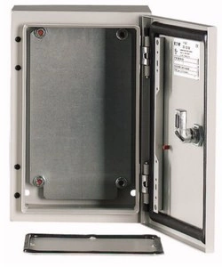 Obudowa z płytą montażową (400x300x150) CS-43/150 o numerze katalogowym 111681 w kategorii Metalowe natynkowe, Rozdzielnice i obudowy. Produkt wyprodukowany przez markę EATON, seria CS.