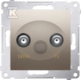 Gniazdo TV-DATA. Dwa porty wyjściowe typu "F" (moduł). Częstotliwość dla wejścia 5-1000 MHz, złoty mat, SIMON54 o numerze katalogowym DAD1.01/44 w kategorii Gniazda podtynkowe, Gniazda instalacyjne. Produkt wyprodukowany przez markę KONTAKT-SIMON, seria SIMON 54.