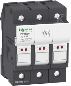 Podstawa bezpiecznikowa 10x38mm 32A 3P o numerze katalogowym DF103V w kategorii Pozostałe, Niesklasyfikowane. Produkt wyprodukowany przez markę SCHNEIDER ELECTRIC.