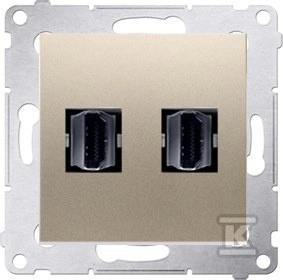 Gniazdo HDMI podwójne (moduł), złoty mat, SIMON54  o numerze katalogowym  DGHDMI2.01/44  w kategorii Gniazda teleinformacyjne, multimedialne, Łączniki i gniazda instalacyjne. Produkt wyprodukowany przez markę KONTAKT-SIMON, seria SIMON 54.