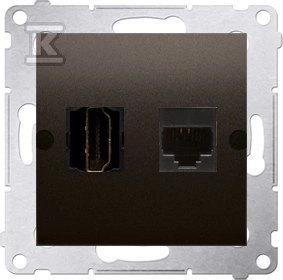 Gniazdo HDMI + RJ45 kat.6. (moduł), brąz mat, SIMON54 o numerze katalogowym DGHRJ45.01/46 w kategorii Gniazda teleinformacyjne, multimedialne, Łączniki i gniazda instalacyjne. Produkt wyprodukowany przez markę KONTAKT-SIMON, seria SIMON 54.