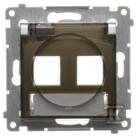 Pokrywa gniazd teleinformatycznych IP44 na Keystone podwójna z polem opisowym, klapka transparentna, brąz mat *Wymagana uszczelka IP44 do ramki, SIMON54 o numerze katalogowym DKP2B.01/46A w kategorii Plakietki, Ramki, klawisze, plakietki. Produkt wyprodukowany przez markę KONTAKT-SIMON, seria SIMON 54.