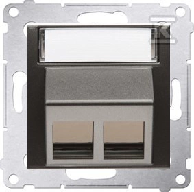 Pokrywa gniazd teleinformatycznych na Keystone skośna podwójna z polem opisowym (moduł). Montaż na łapki i wkręty, antracyt, SIMON54 o numerze katalogowym DKP2S.01/48 w kategorii Plakietki, Ramki, klawisze, plakietki. Produkt wyprodukowany przez markę KONTAKT-SIMON, seria SIMON 54.