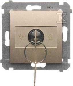 Łącznik na kluczyk roletowy 1-bieg.(moduł) 3 pozycyjny I-0-II" 2 styki N/O, 5A, 250~. Możliwość wyjęcia klucza w każdej pozycji, złoty mat, SIMON54 o numerze katalogowym DWZK.01/44 w kategorii Łączniki podtynkowe jednobiegunowe, Łączniki jednobiegunowe. Produkt wyprodukowany przez markę KONTAKT-SIMON, seria SIMON 54.