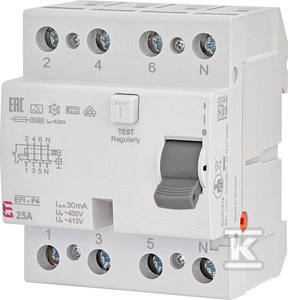 Wyłącznik różnicowoprądowy EFI-P4 A 25/0.03 o numerze katalogowym 002061511 w kategorii Wyłączniki różnicowoprądowe typ A, Wyłączniki różnicowoprądowe. Produkt wyprodukowany przez markę ETI.