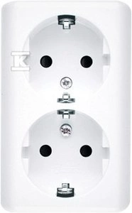 Gniazdo podwójne Schuko natynkowe z przesłonami torów prądowych wersja skandynawska 16A, 250V~, zaciski śrubowe, biały, SIMON54 o numerze katalogowym EGSZ2NZ/11 w kategorii Gniazda podtynkowe, Gniazda instalacyjne. Produkt wyprodukowany przez markę KONTAKT-SIMON, seria SIMON 54.