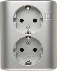 Gniazdo podwójne Schuko podtynkowe z przesłonami torów prądowych wersja skandynawska 16A, 250V~, szybkozłącza, srebrny mat, SIMON54 o numerze katalogowym EGSZ2SPZ/43 w kategorii Gniazda podtynkowe, Gniazda instalacyjne. Produkt wyprodukowany przez markę KONTAKT-SIMON, seria SIMON 54.