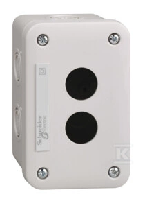 Pusta kaseta sterująca 2 otwory Ø22 jasnoszara o numerze katalogowym  XALE2 w kategorii Przyciski i przełączniki sterownicze - akcesoria, Przyciski i przełączniki sterownicze. Produkt wyprodukowany przez markę SCHNEIDER ELECTRIC, seria Harmony XALE.