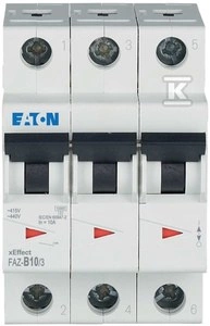 Wyłącznik nadprądowy serii 15kA 3-biegunowy FAZ-B10/3 o numerze katalogowym 278843 w kategorii Wyłączniki nadprądowe 15kA, Wyłączniki nadprądowe. Produkt wyprodukowany przez markę EATON, seria FAZ.