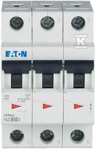 Wyłącznik nadprądowy serii 15kA 3-biegunowy FAZ-B50/3 o numerze katalogowym 278852 w kategorii Wyłączniki nadprądowe 15kA, Wyłączniki nadprądowe. Produkt wyprodukowany przez markę EATON, seria FAZ.