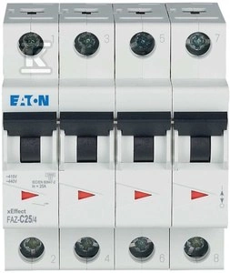 Wyłącznik nadprądowy serii 15kA 4-biegunowy FAZ-C25/4 o numerze katalogowym  279063 w kategorii Wyłączniki nadprądowe 15kA, Wyłączniki nadprądowe. Produkt wyprodukowany przez markę EATON, seria FAZ.