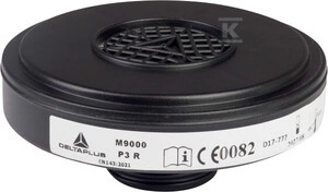 Opakowanie 4 filtrów P3R do masek pełnotwarzowych M9200 i M9300 czarny bez rozmiaru o numerze katalogowym M9000P3R w kategorii Ochrona głowy>Maski wielokrotnego użytku. Produkt wyprodukowany przez markę DELTA PLUS, seria OCHRONA GŁOWY.