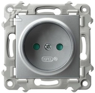 Gniazdo pojedyncze z przesłonami torów prądowych - SREBRO o numerze katalogowym GP-1ZP/M/18 w kategorii Gniazda instalacyjne>Gniazda podtynkowe. Produkt wyprodukowany przez markę OSPEL, seria SZAFIR.