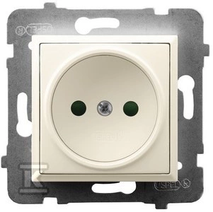 Gniazdo pojedyncze bez uziemienia z przesłonami torów prądowych, ecru ARIA o numerze katalogowym GP-1UP/M/27 w kategorii Gniazda podtynkowe, Gniazda instalacyjne. Produkt wyprodukowany przez markę OSPEL, seria ARIA.