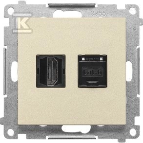 Gniazdo HDMI + RJ45 kat.6. (moduł): Szampański mat, SIMON55 o numerze katalogowym TGHRJ45.01/144 w kategorii Łączniki i gniazda instalacyjne>Gniazda teleinformacyjne, multimedialne. Produkt wyprodukowany przez markę KONTAKT-SIMON, seria SIMON 55.