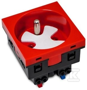 Gniazdo 230V z uziemieniem bezśrubowe 1-krotne std 45x45, z blokadą i zwalniaczem, czerwone o numerze katalogowym E/BGNBZ w kategorii Gniazda systemu 45x45, Osprzęt biurowy, akcesoria. Produkt wyprodukowany przez markę EMITER, seria AKCESORIA DO OKABLOWANIA.