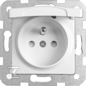 Gniazdo z uziemieniem z przesłonami styków z klapką, LINNERA S biały o numerze katalogowym 91440070 w kategorii Gniazda instalacyjne>Gniazda podtynkowe. Produkt wyprodukowany przez markę PANASONIC, seria LINNERA S.