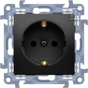 Gniazdo wtyczkowe Schuko pojedyncze z przesłonami torów prądowych (moduł) 16A, 250V~, zaciski śrubowe, czarny mat, SIMON10 o numerze katalogowym CGSZ1Z.01/49 w kategorii Gniazda podtynkowe, Gniazda instalacyjne. Produkt wyprodukowany przez markę KONTAKT-SIMON, seria SIMON 10.