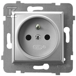 Gniazdo pojedyncze z uziemieniem, srebro ARIA o numerze katalogowym  GP-1UZ/M/18 w kategorii Gniazda podtynkowe, Gniazda instalacyjne. Produkt wyprodukowany przez markę OSPEL, seria ARIA.