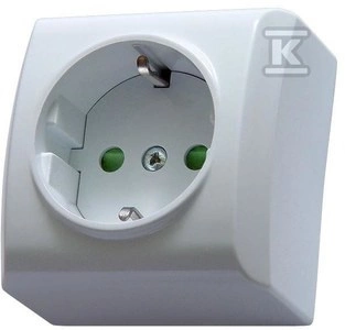 Gniazdo pojedyncze z uziemieniem schuko z przesłonami torów prądowych, N/T IP20, biały BIS o numerze katalogowym GN-1BSP/00 w kategorii Gniazda natynkowe, Gniazda instalacyjne. Produkt wyprodukowany przez markę OSPEL, seria BIS.