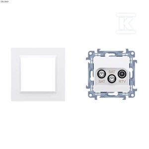 Gniazdo antenowe satelitarne podwójne SAT-SAT-RTV (moduł). Tłum: SAT 1-0.5 dB, SAT 2-1.5 dB, RTV-0.5 dB, biały Simon10 + Ramka 1-krotna - uniwersalna poziom i pion, biały Simon10 o numerze katalogowym DLG943 w kategorii Łączniki i gniazda instalacyjne>Gniazda teleinformacyjne, multimedialne. Produkt wyprodukowany przez markę KONTAKT-SIMON, seria SIMON 10.