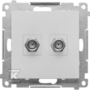 Gniazdo antenowe typu „F” podwójne (moduł). Do instalacji indywidualnych.: Aluminium mat, SIMON55  o numerze katalogowym  TASF2.01/143  w kategorii Łączniki i gniazda instalacyjne>Gniazda teleinformacyjne, multimedialne. Produkt wyprodukowany przez markę KONTAKT-SIMON, seria SIMON 55.