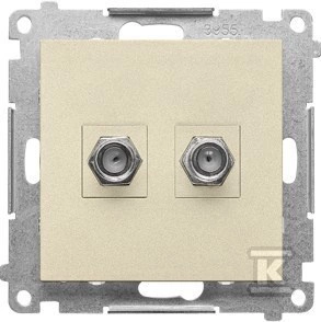 Gniazdo antenowe typu „F” podwójne (moduł). Do instalacji indywidualnych.: Szampański mat, SIMON55 o numerze katalogowym TASF2.01/144 w kategorii Łączniki i gniazda instalacyjne>Gniazda teleinformacyjne, multimedialne. Produkt wyprodukowany przez markę KONTAKT-SIMON, seria SIMON 55.