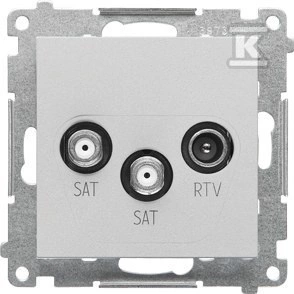 Gniazdo antenowe satelitarne podwójne SAT-SAT-RTV (moduł). 2x Wejście: 5 MHz÷2,4 GHz: Aluminium mat, SIMON55 o numerze katalogowym TASK2.01/143 w kategorii Łączniki i gniazda instalacyjne>Gniazda teleinformacyjne, multimedialne. Produkt wyprodukowany przez markę KONTAKT-SIMON, seria SIMON 55.