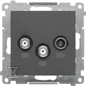 Gniazdo antenowe satelitarne podwójne SAT-SAT-RTV (moduł). 2x Wejście: 5 MHz÷2,4 GHz: Grafitowy mat, SIMON55  o numerze katalogowym  TASK2.01/116  w kategorii Łączniki i gniazda instalacyjne>Gniazda teleinformacyjne, multimedialne. Produkt wyprodukowany przez markę KONTAKT-SIMON, seria SIMON 55.