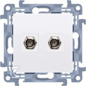 Gniazdo antenowe typu "F" podwójne (moduł), biały Simon10  o numerze katalogowym  CASF2.01/11  w kategorii Gniazda teleinformacyjne, multimedialne, Łączniki i gniazda instalacyjne. Produkt wyprodukowany przez markę KONTAKT-SIMON, seria SIMON 10.