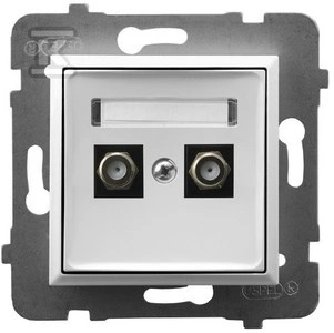 Gniazdo antenowe typu F podwójne, biały ARIA  o numerze katalogowym  GPA-2UF/M/00  w kategorii Gniazda teleinformacyjne, multimedialne, Łączniki i gniazda instalacyjne. Produkt wyprodukowany przez markę OSPEL, seria ARIA.
