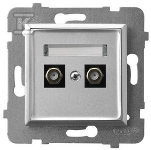 Gniazdo antenowe typu F podwójne, srebro ARIA o numerze katalogowym GPA-2UF/M/18 w kategorii Gniazda teleinformacyjne, multimedialne, Łączniki i gniazda instalacyjne. Produkt wyprodukowany przez markę OSPEL, seria ARIA.