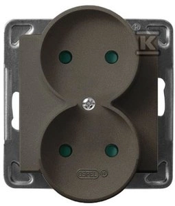 Gniazdo podwójne z przesłonami torów prądowych, czekoladowy metal SONATA o numerze katalogowym GP-2RRP/M/40 w kategorii Gniazda podtynkowe, Gniazda instalacyjne. Produkt wyprodukowany przez markę OSPEL, seria SONATA.