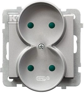Gniazdo podwójne z przesłonami torów prądowych, srebro mat SONATA o numerze katalogowym GP-2RRP/M/38 w kategorii Gniazda podtynkowe, Gniazda instalacyjne. Produkt wyprodukowany przez markę OSPEL, seria SONATA.