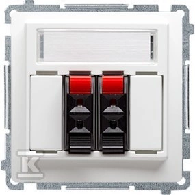 Gniazdo głośnikowe 2-krotne z polem opisowym (moduł), Mocowanie na łapki i wkręty białe BASIC MODUŁ o numerze katalogowym BMGL3.01/11 w kategorii Gniazda głośnikowe, Łączniki i gniazda instalacyjne. Produkt wyprodukowany przez markę KONTAKT-SIMON, seria BASIC MODUŁ.