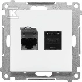 Gniazdo komputerowe podwójne RJ45 kategoria 6, z przesłoną przeciwkurzową (moduł): Biały mat, SIMON55 + Ramka 1-krotna LINE: Biały mat, SIMON55 o numerze katalogowym DMR949 w kategorii Łączniki i gniazda instalacyjne>Gniazda teleinformacyjne, multimedialne. Produkt wyprodukowany przez markę KONTAKT-SIMON, seria SIMON 55.